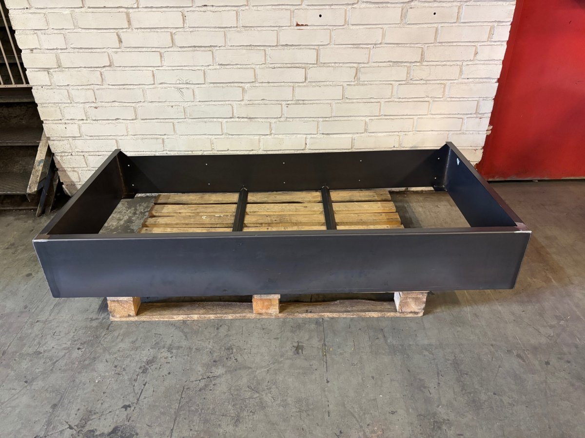 Bockad ovankant, utan bottenplatta. Ramen har en långsida som inte är bockad utan är tänkt att ställas mot vägg, mur eller dyl, se bild.