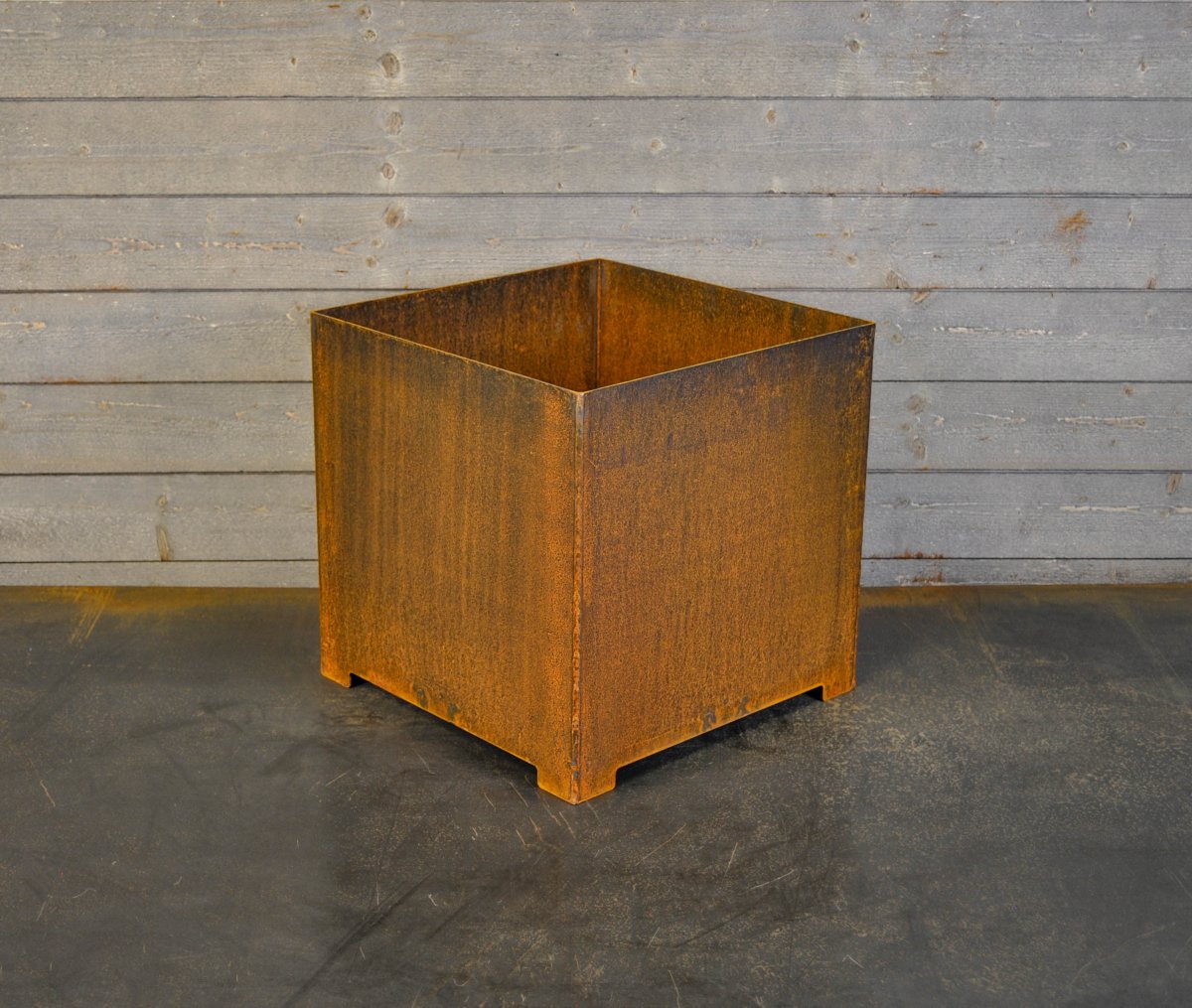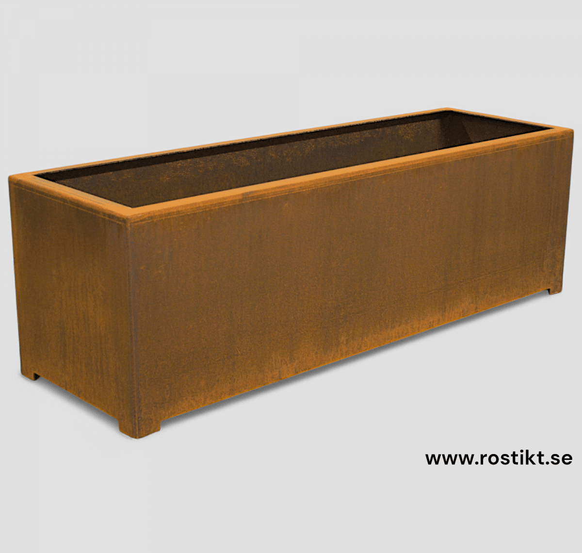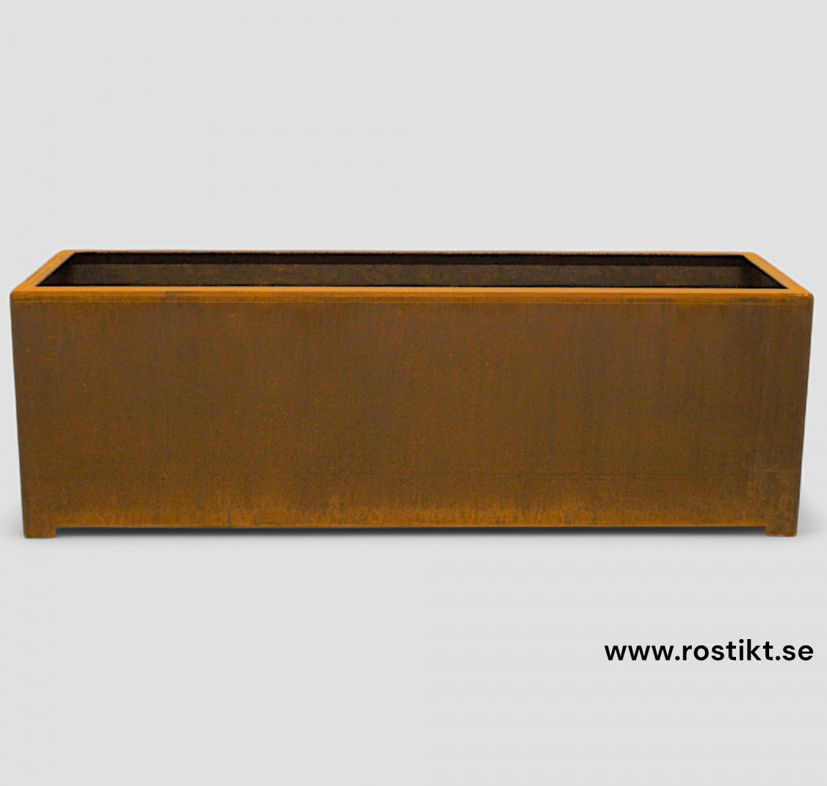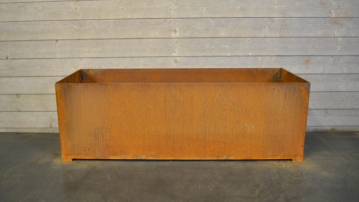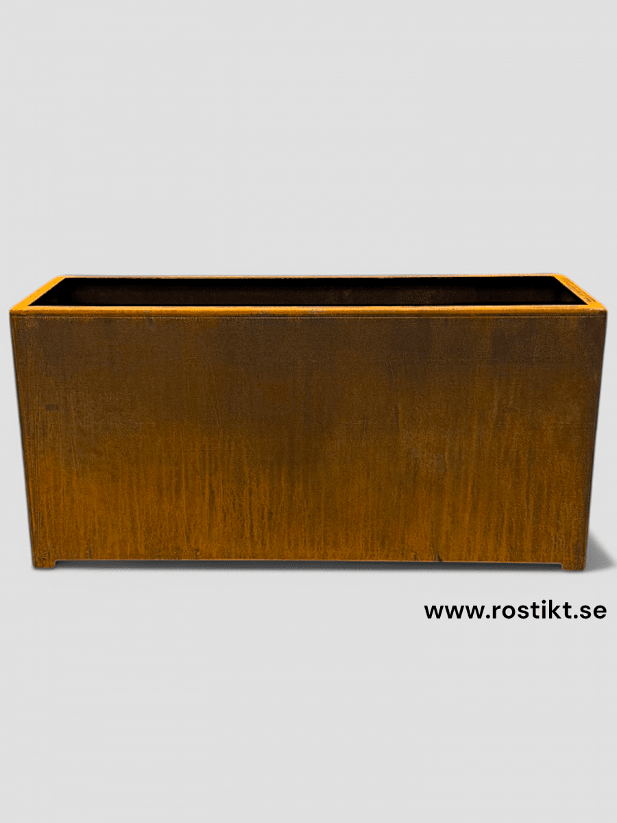 I den här kategorin kan du beställa en kruka med botten. Lådan är tillverkad i 3mm Cortenstål. I botten är det flera dräneringshål.